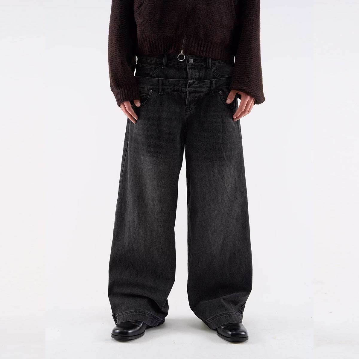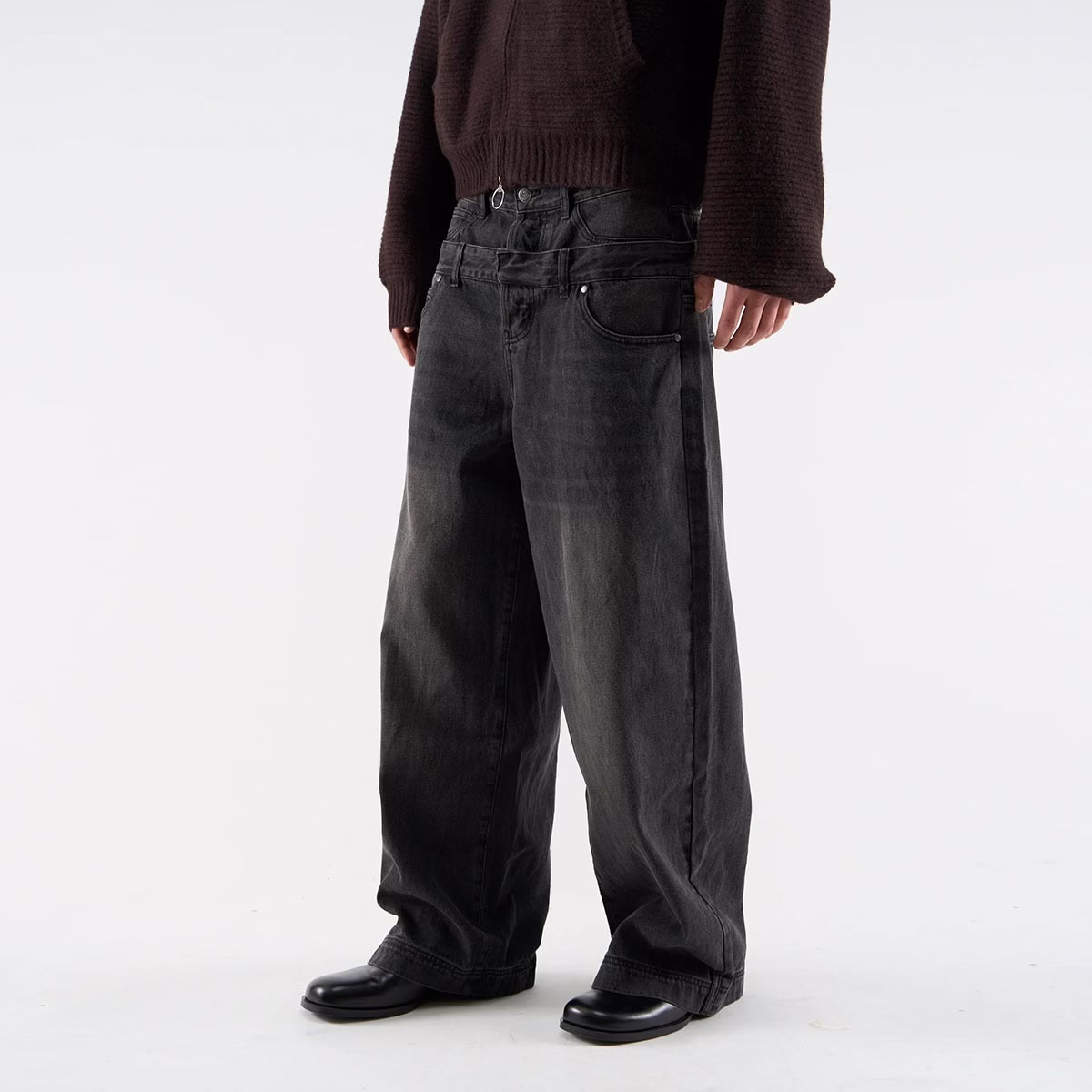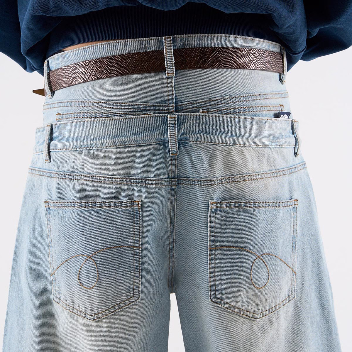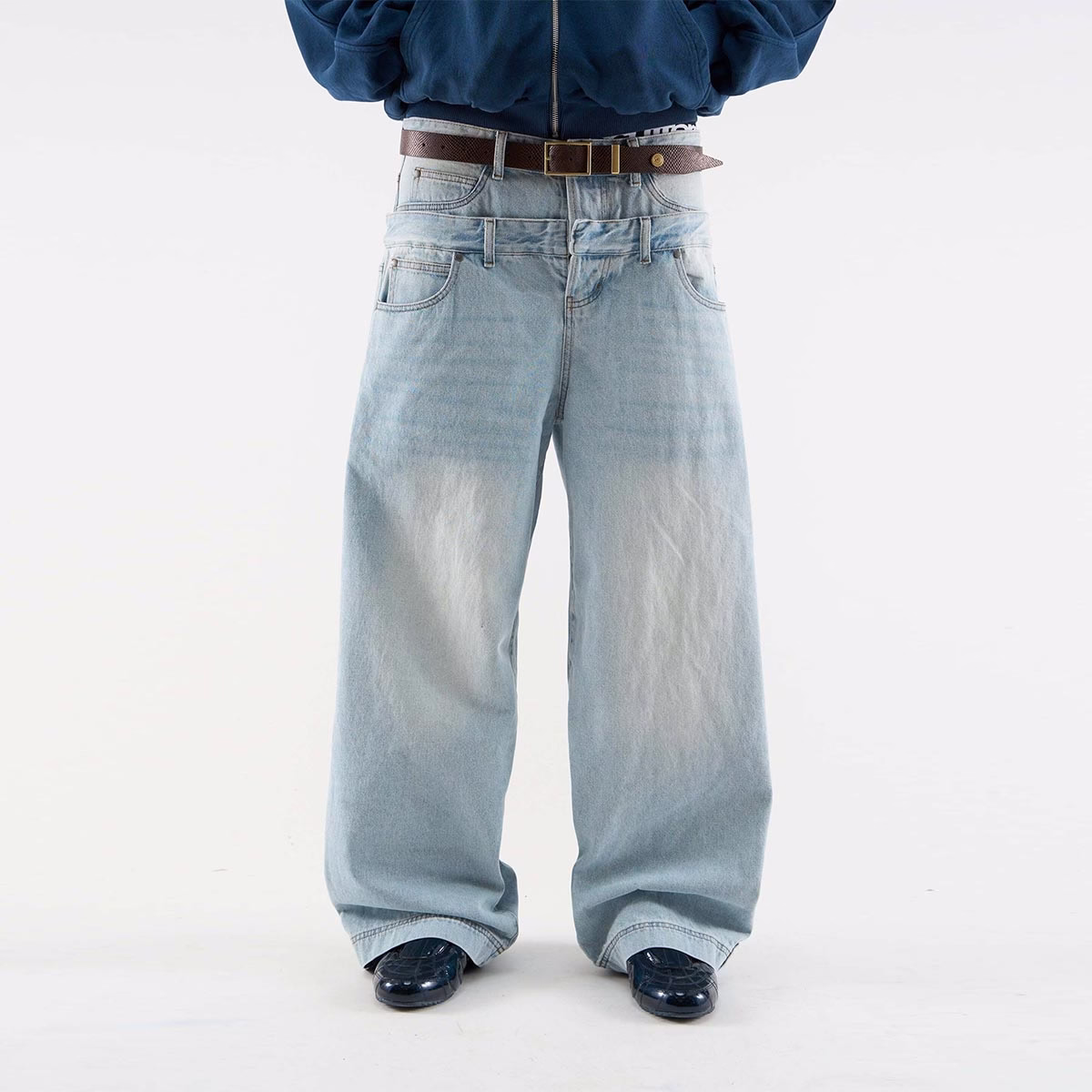 Yali-Clothing Custom OEM 100% Cotton Double-Layer Waistband Vintage Wash Denim Jeans are crafted from 14oz heavyweight denim, presenting a soft, faded finish that combines vintage texture with a modern cut. The double-layer waistband design enhances waist support and structural stability, while the relaxed wide-leg straight silhouette provides a comfortable wearing experience. Classic five-pocket styling and hem strap details offer both practicality and style. Elevate your private label clothing line.