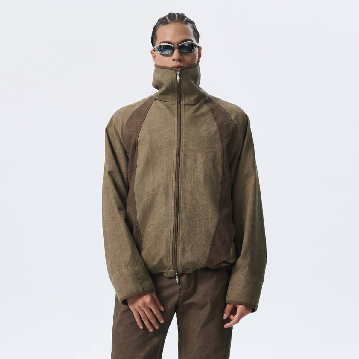 Yali-Clothing’s custom men’s stand-up collar jacket is made of 100% cotton hand-dyed mud-dyed pearl fabric, which has a delicate texture, is easy to wash and care, and combines new vintage style. The two-color splicing design adds a sense of layering, and the stand-up collar and hem drawstring provide windproof and warmth. It is available in gray or brown. It supports customized logos and sizes, and screen printing, embroidery and other processes meet brand needs. It is suitable for urban and outdoor wear in autumn and highlights personality.