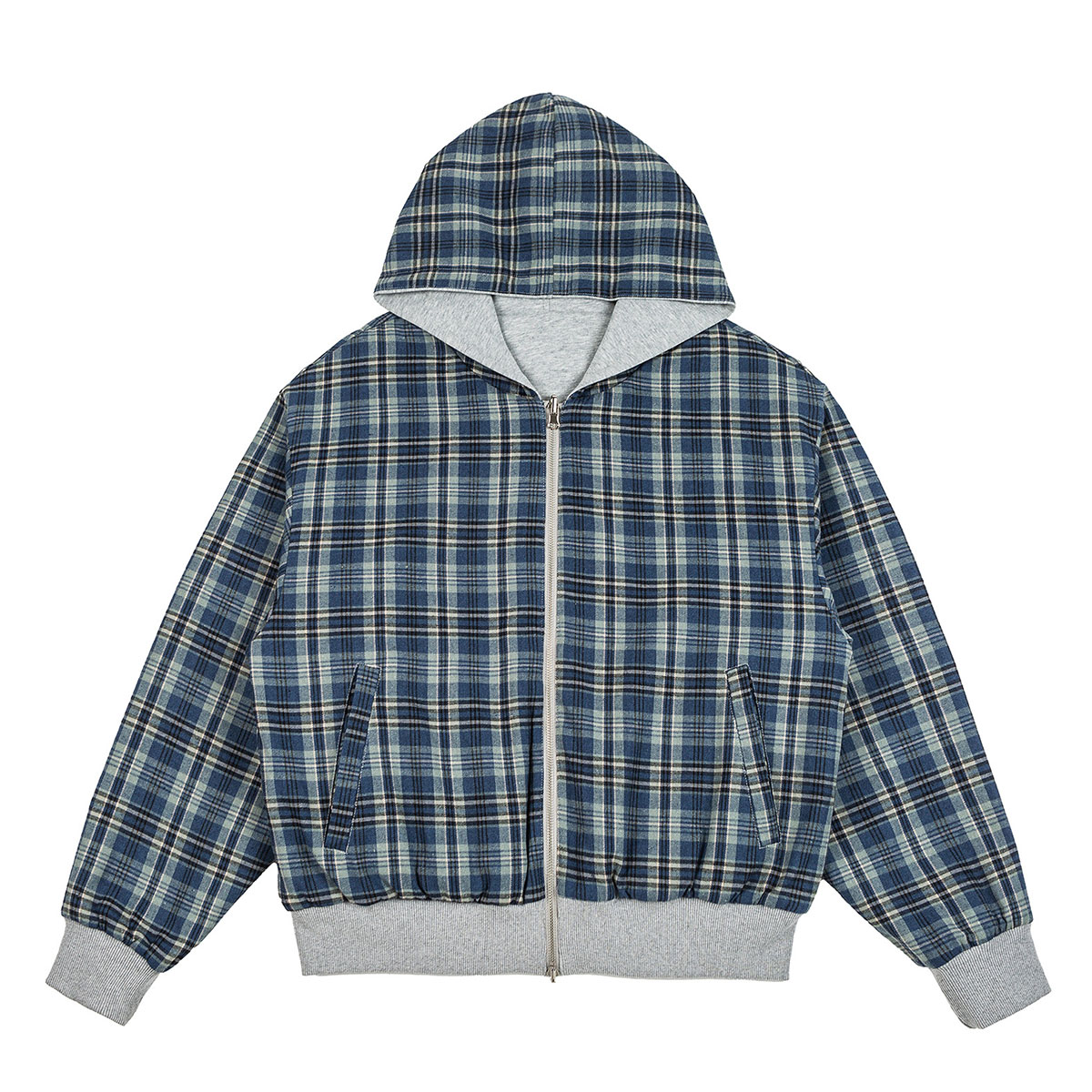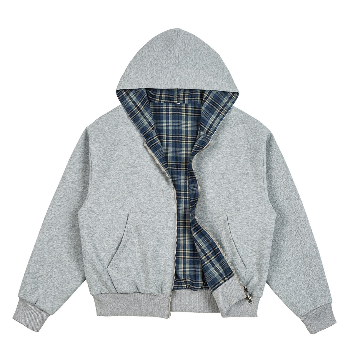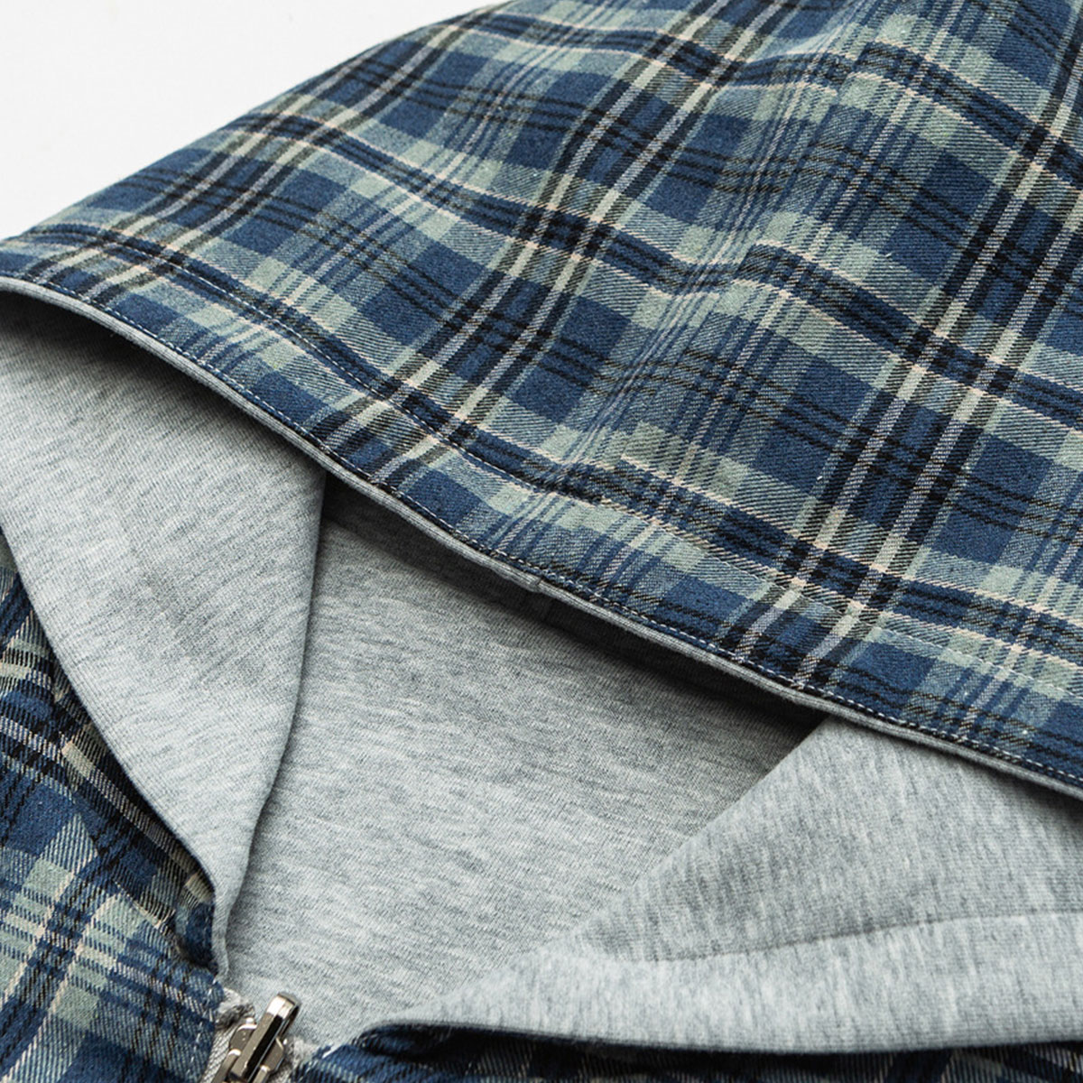 Maßgeschneiderter Reißverschluss, überschnittene Schultern, doppellagiger, wendbarer Hoodie mit Karomuster