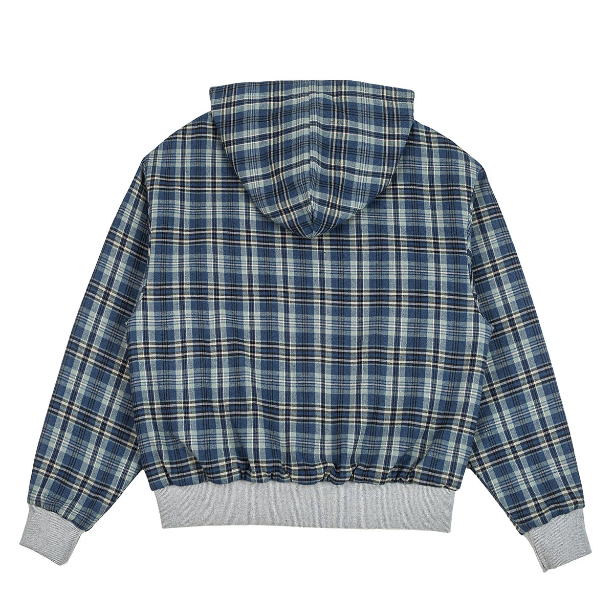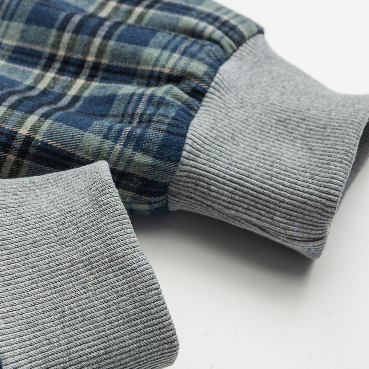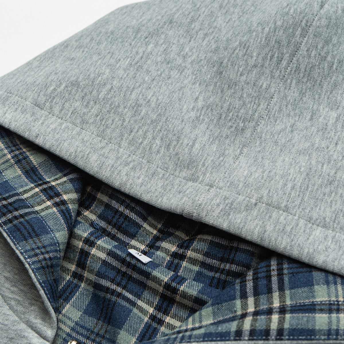 Die ODM-Maßanfertigung von Yali-Clothing, eine wendbare Kapuzenjacke mit Reißverschluss und Karomuster, besteht aus einem Hauptmaterial aus einer Mischung aus 60% Baumwolle und 40% Polyester, das ein moderates Gewicht und ein angenehmes Tragegefühl bietet und sich aufgrund seines Gewichts und seiner Schichtung ideal für den Übergang zwischen Frühling und Herbst eignet. Die Außenseite präsentiert sich in einem klassischen blaugrauen Karomuster, während die Innenseite aus einem weichen Strickmischgewebe besteht, das sowohl Wärme als auch Atmungsaktivität bietet. Das wendbare Design ermöglicht eine größere Flexibilität in Bezug auf Farbe und Stil. Praktische Taschen sind auf beiden Seiten vorhanden, und ein Zwei-Wege-Reißverschluss ermöglicht ein einfaches Öffnen und Schließen für bequemes Schichten. Elastische Rippbündchen an Ärmeln und Saum sorgen für eine bequemere Passform.