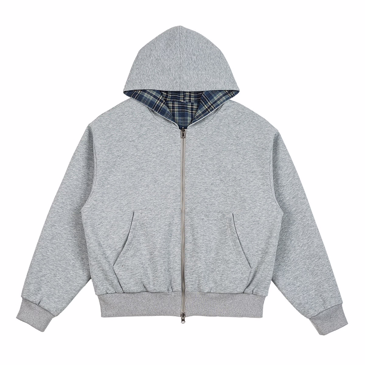 Yali Clothing Individuell gestaltbarer, wendbarer Kapuzenpullover mit Reißverschluss, kariert, locker geschnitten, 100% Baumwoll-Kapuzenpullover, Großhandel