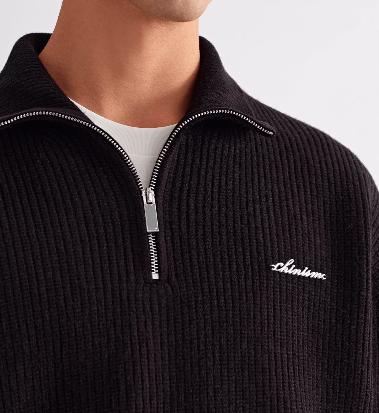Pull OEM à col montant et demi-fermeture éclair de haute qualité pour hommes Pull d'hiver en laine épaisse Pull tricoté à col montant