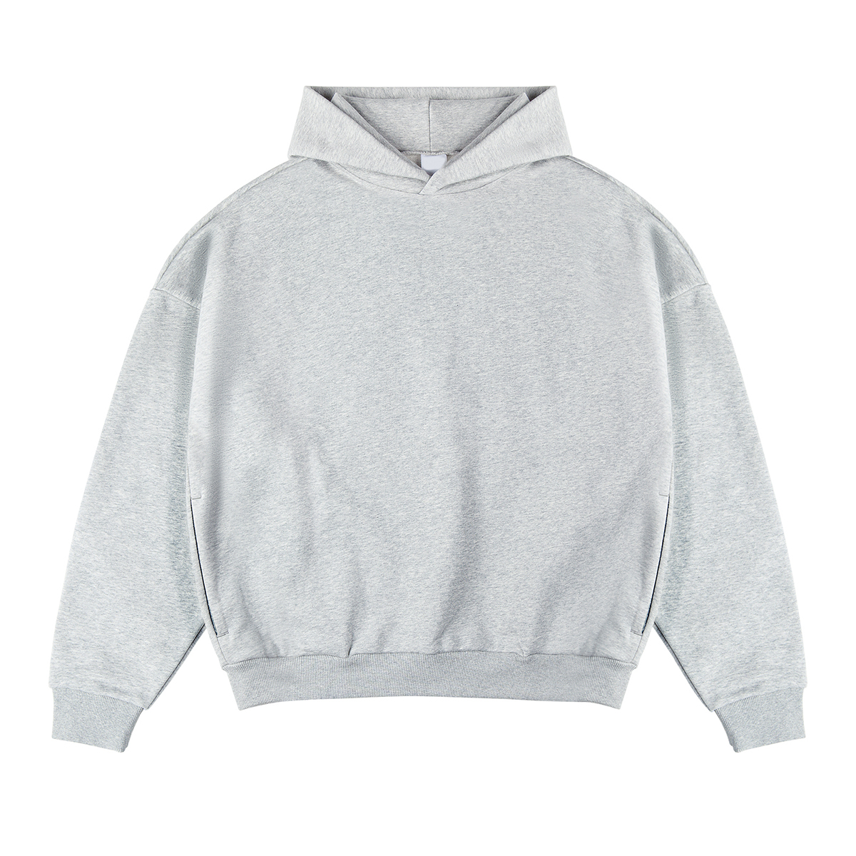 Au cours du processus de fabrication, nous utilisons un tissu éponge à double brin avec une densité de tissage élevée, ce qui donne un aspect net et élégant qui résiste à l'usure répétée sans perdre sa forme. Le motif de couleur unie est simple et élégant, et le style pull-over à capuche est très tendance. Disponible dans les tailles S à XXXL, il est respirant sans être étouffant, et épais sans être encombrant, ce qui garantit confort et durabilité. Nous proposons également des services de personnalisation OEM/ODM pour répondre aux besoins des grossistes et des vendeurs de marques privées.