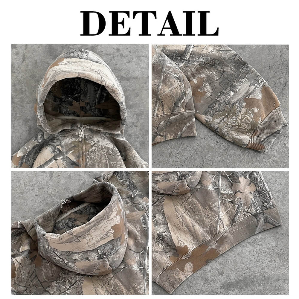 YALI-Clothing Sweats à capuche sur mesure avec fermeture éclair 100 % coton Camouflage Real Tree pour hommes Vente en gros