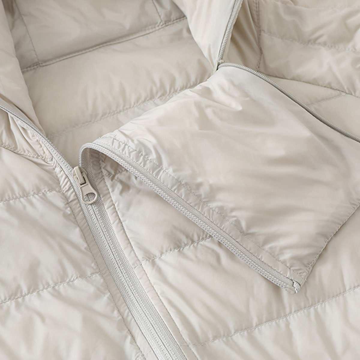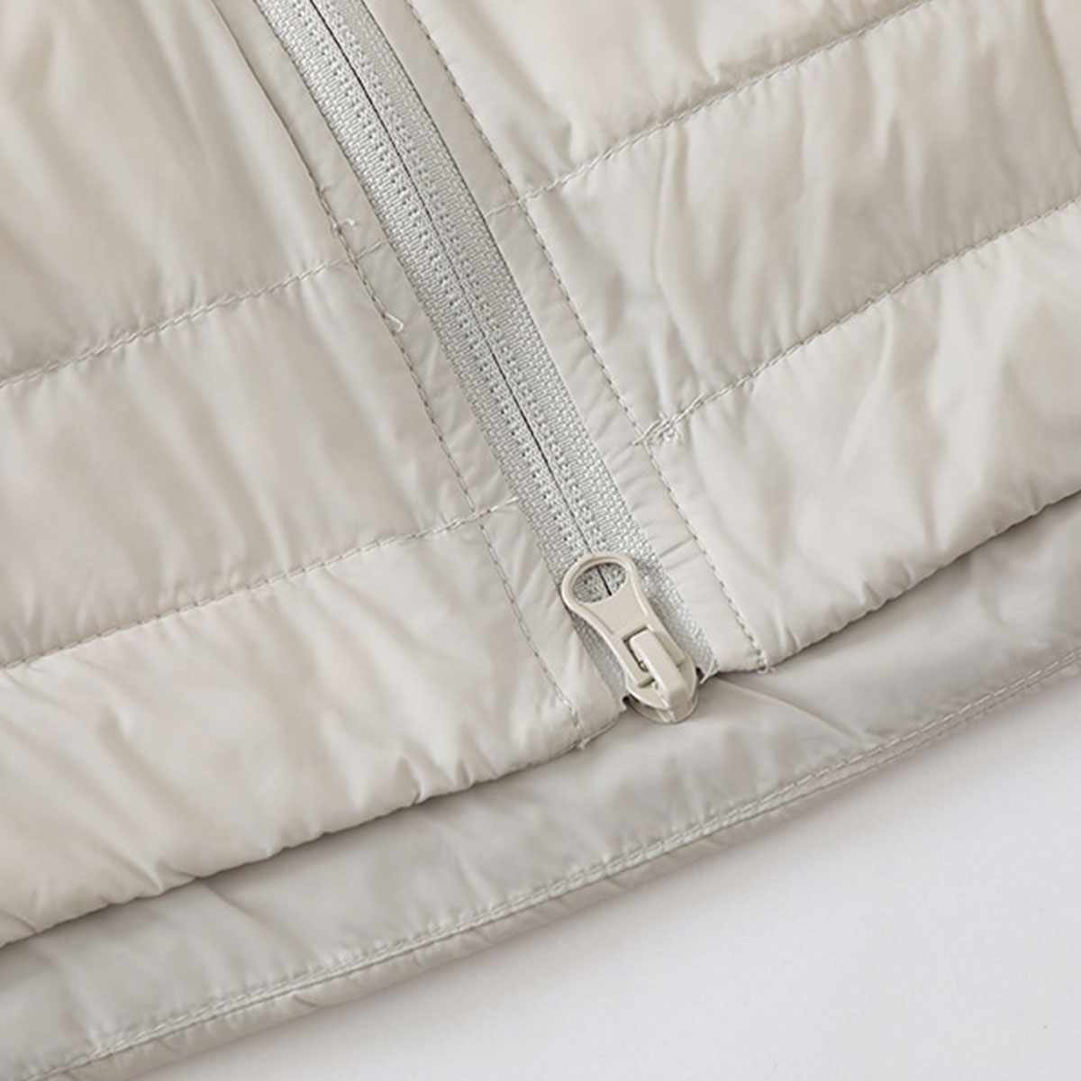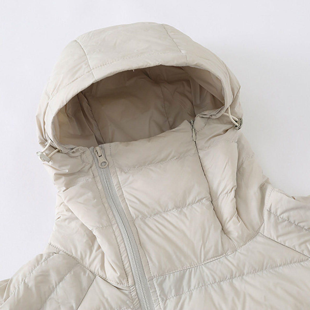 Il piumino leggero personalizzato di alta qualità Yali-Clothing è imbottito con piumino 80%, offre calore leggero ed è progettato per le attività all'aperto. Lo strato esterno è realizzato in poliestere antivento e resistente all'acqua. I dettagli includono aperture con cerniera nascosta, cordini regolabili sul cappuccio e una cerniera a doppia direzione sulla chiusura per una vestibilità morbida e una silhouette pulita. Le maniche raglan e i polsini elasticizzati migliorano la libertà di movimento. L'orlo con coulisse consente una vestibilità aderente. Il design complessivo presenta uno stile moderno e casual con un calore pratico.
