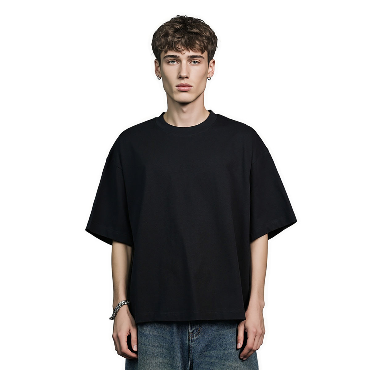 As T-shirts oversized de algodão 100% personalizadas da Yali-Clothing OEM utilizam um tecido pesado de 305 e 270 g/m², espesso mas não rígido. O design de ombros caídos confere ao look geral um toque casual mas elegante. O decote é um decote de equipa clássico com nervuras alargadas para evitar o problema comum de deformação após algumas lavagens. Oferecemos os estilos Cropped Tee Boxy Fit e Oversize, com mangas curtas e ajuste regular, que não agridem a pele, são de secagem rápida e respiráveis, resistentes a rugas e anti-pilling. Para cooperação OEM/ODM, podemos adicionar o seu próprio logótipo, padrões impressos ou bordados de forma flexível. Desde a seleção do fio até à embalagem do produto acabado, fornecemos um serviço completo para garantir que cada peça resiste aos testes de mercado. A linha de ombros solta e o corte boxy na imagem tornam-no muito street-style quando usado, durável e amigo do ambiente.
